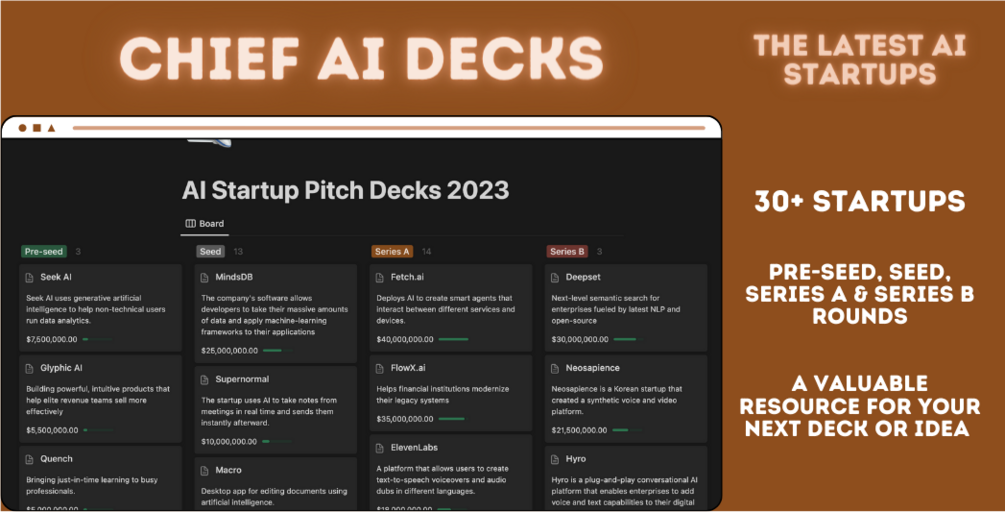 Introducing Chief AI Decks, the #1 collection of pitch decks that AI startups have used to raise Billions this year.